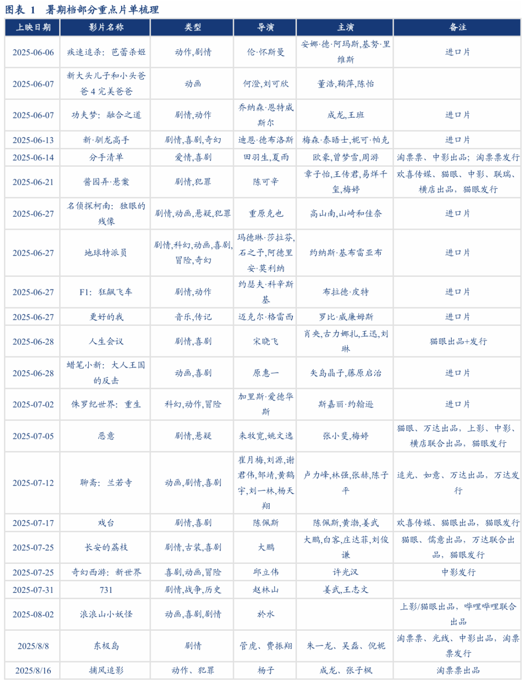 当前市场预期低,看好大盘边际改善。大盘热度下降,市场预期低,看好供给驱动下大盘边际改善。今年Q1《哪吒2》带动观影热潮,但Q2起由于未有大单片上映,大盘热度有所下降,当前市场对暑期档预期低,但单片定档已陆续开启,弹药充足,看好大盘边际改善。